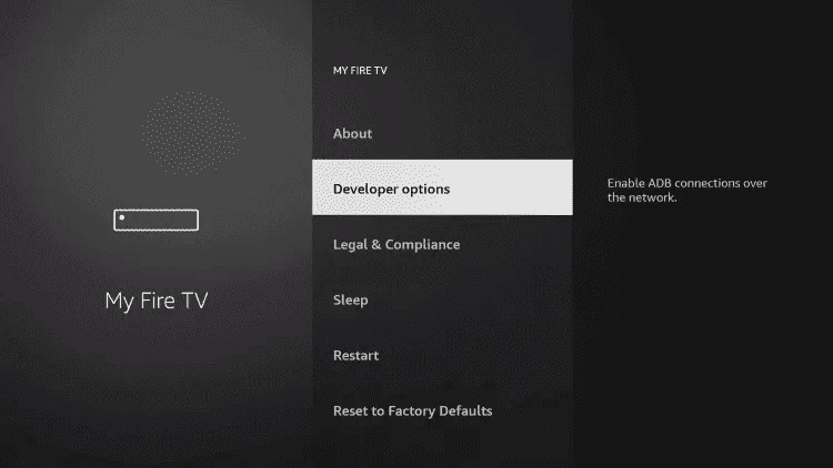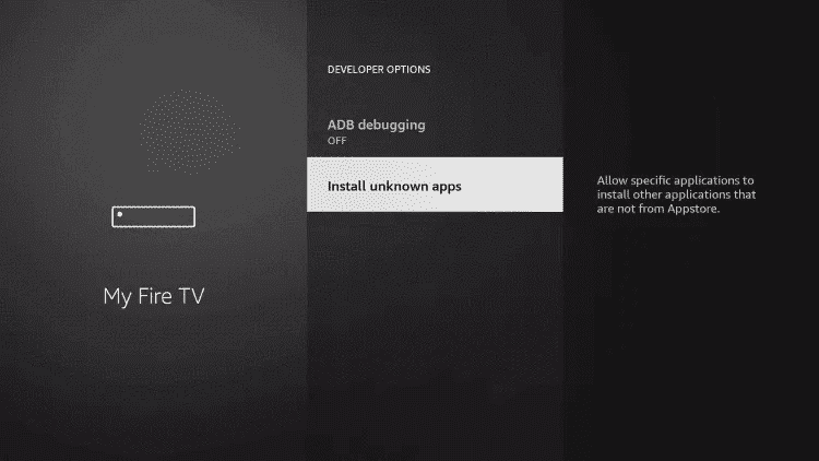 17. Go to settings of firestick >> My Fire TV >> Developer Options >> Install from unknown apps >> Click Downloader to change the status to ON.